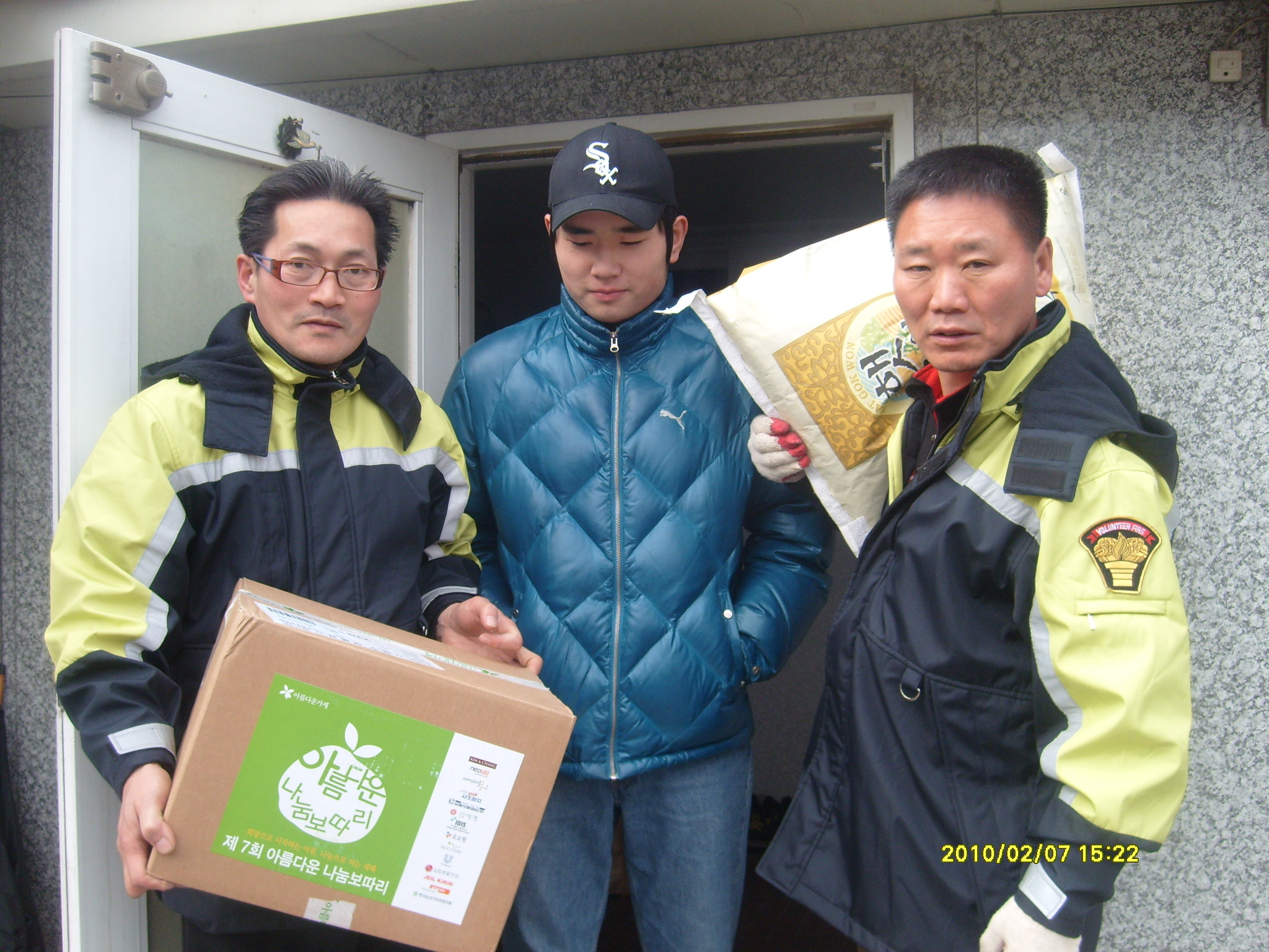 춘천의용소방대(대장 이돈균)에서는 재활협회와 아름다운가게에서 주최하는 행복배달 행사에 참석하여 선정된 50가구에 쌀 20kg 과 생필품을 전달하는 행사를 가졌습니다. 춘천의용소방대는 힘들고 어려운곳에서 솔선수범하는 사람이 될것입니다.
