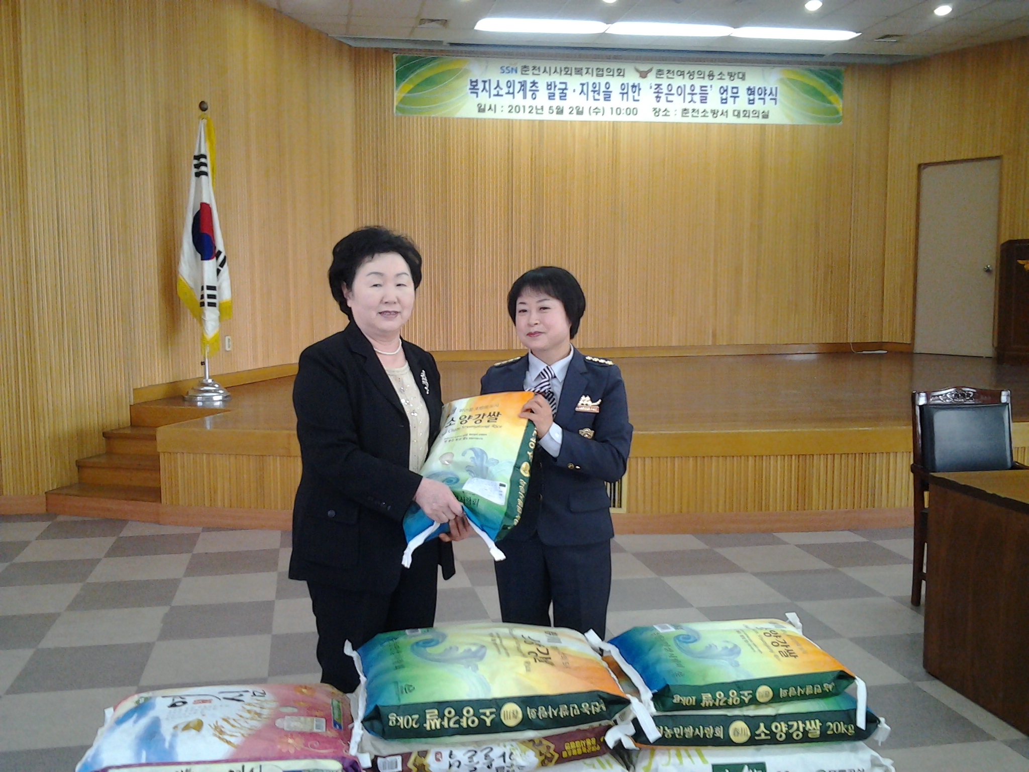 취임식때 받으셨던 쌀을 복지소외계층 발불.지원 "좋은이웃들"과 협약식을 맺고 모두 기증했습니다