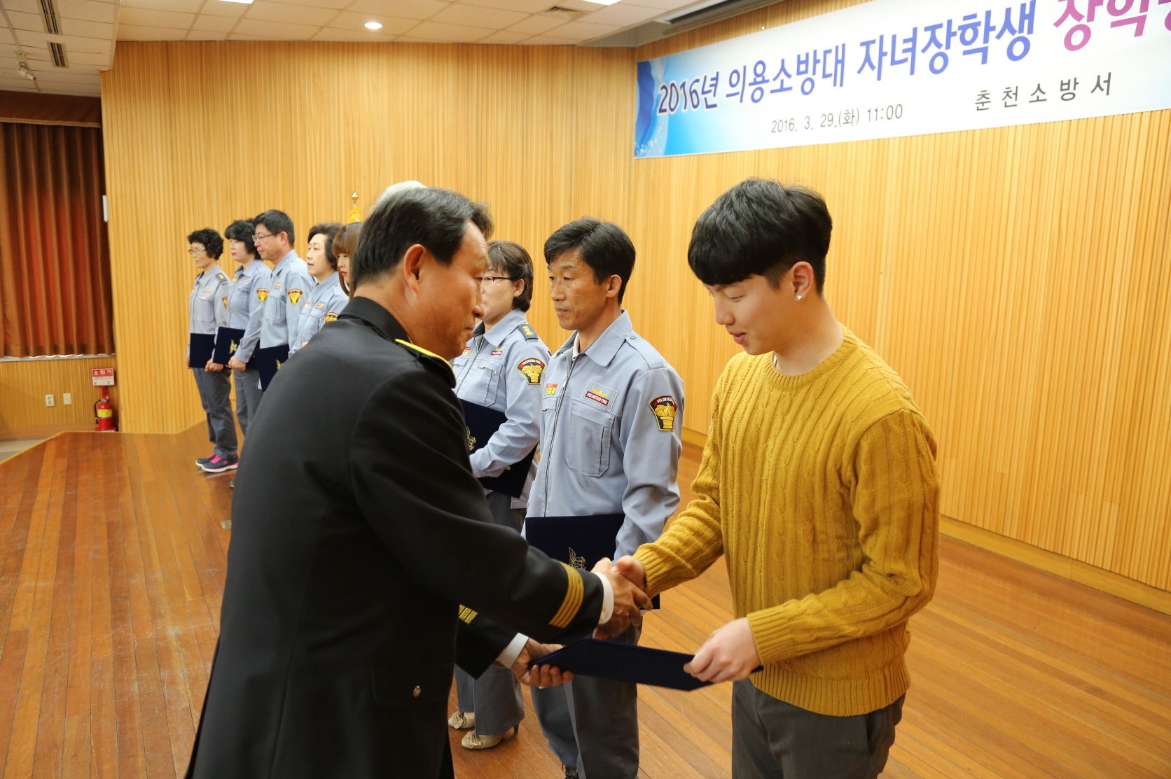 소방서에서는 평소 각종 화재 등 재난현장과 지역사회에 묵묵히 봉사하는 의용소방대원의 사기를 높이기 위해 매년 자녀장학생을 선발하여 장학금을 지급하고 있으며, 장학금 수여자는 3년 이상 근속한 의용소방대원 자녀 중 학업이 우수하고 품행이 바른 학생을 각 의용소방대장과 학교장의 추전에 의해 선발하였다.