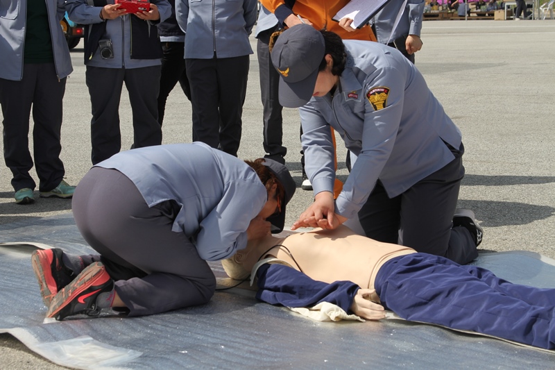 이번대회에는 수관연장하고 방수 자세, 심폐소생술 등의 7종목 경연에서 그동안 갈고 닦은 기량을 겨루었다.