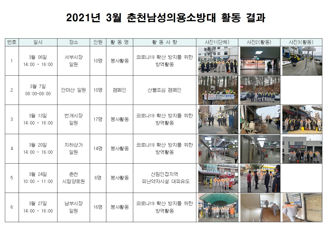 춘천남성의용소방대 3월 방역활동 보고