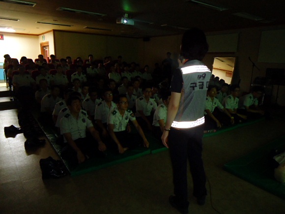 춘천소방서(서장 조완구) 효자119안전센터에서는 7일 13시부터 약 2시간에 걸쳐 춘천 경찰서 지하1층 시네마극장에서 타격대 및 기동중대소속 의무경찰 64명을 대상으로 심폐소생술 및 응급처치 교육등을 실시하였습니다. 30도 가까운 무더운 날씨에서도 교육에 적극 응해주신 의무경찰분들 고생하셨습니다^^