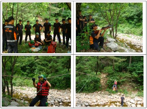양구119안전센터(센터장 강경훈)에서는 2012. 6.11(금) 양구군 남면 광치휴양림 계곡에서 계곡구조훈련을 실시하였습니다. 곧 다가올 휴가철을 대비하여 갑작스런 폭우 등으로 계곡 고립시 구조장비를 사용하여 계곡 건너편 요구조자를 구조하는 가상훈련을 실시하였습니다. 날은 조금 더웠지만 실제 구조장비를 현장에 활용하여 숙달하는 훈련에 보람된 하루였습니다.