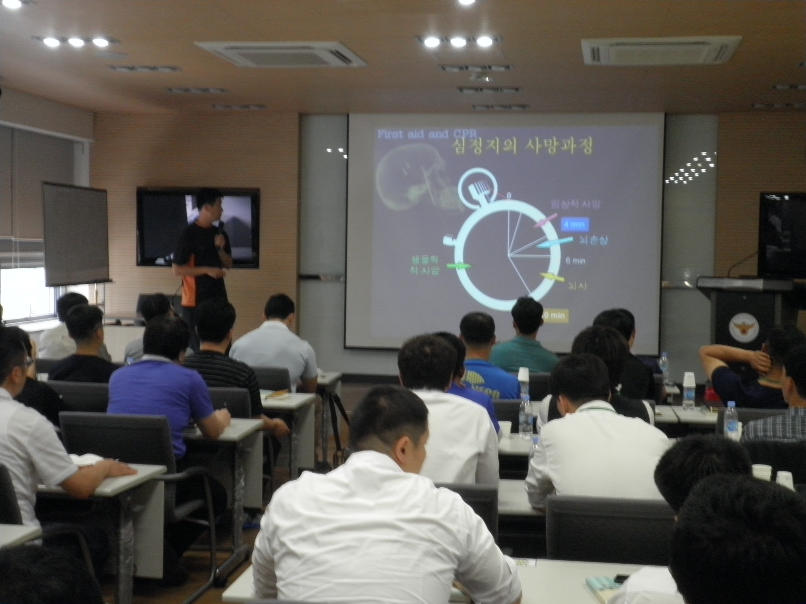 석사119안전센터(센터장 이봉춘)에서는 금일 신규 경찰관들을 대상으로 심폐소생술 교육을 실시하였습니다. 새로 배부 받은 마네킹을 이용 실습위주로 10명씩 실전과 같은 교육을 하였습니다. 더운 날씨에 교육에 열정을 보이신 소방,경찰 파이팅~~~~수고하셨습니다..^^
