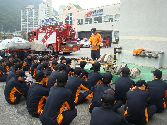 춘천소방서(서장 조완구)는 2010. 10.7일자 신규임용자 30명에 대한 자체 직무교육을 실시합니다. 교육은 각 과의 과장,담당의 강의와 센터,대장의 실습훈련으로 진행중이며, 신규임용자 모두 난생처음 입어보는 방화복을 입고 땀을 흘리며, 훈련에 임하고 있습니다. 신참들에게 격려의 박수를 보냅니다!