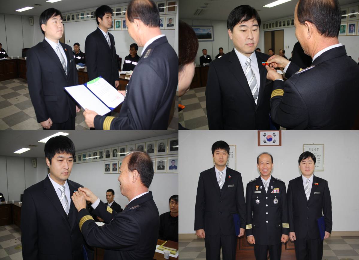 소회의실에서 효자센터 소방교 김경철, 김희석에게