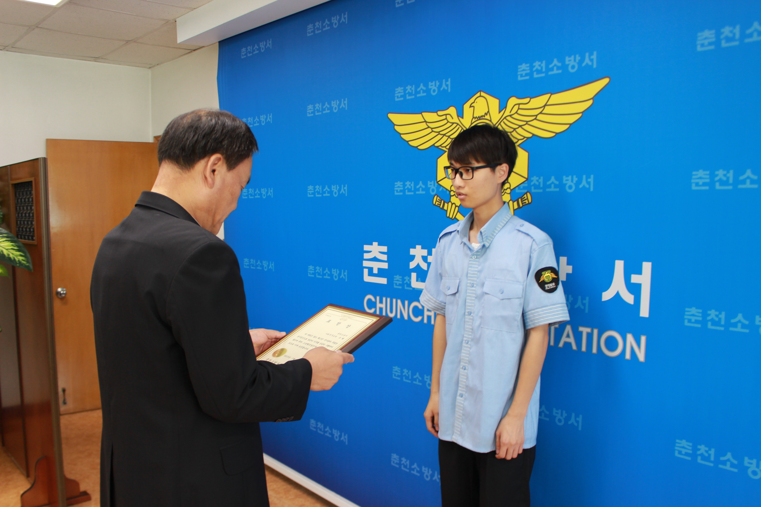 춘천소방서(서장 박창진)는 7.28일 군복무대체를 마치고 소집해제하는 사회복무요원에 대해 전역식을 개최했다