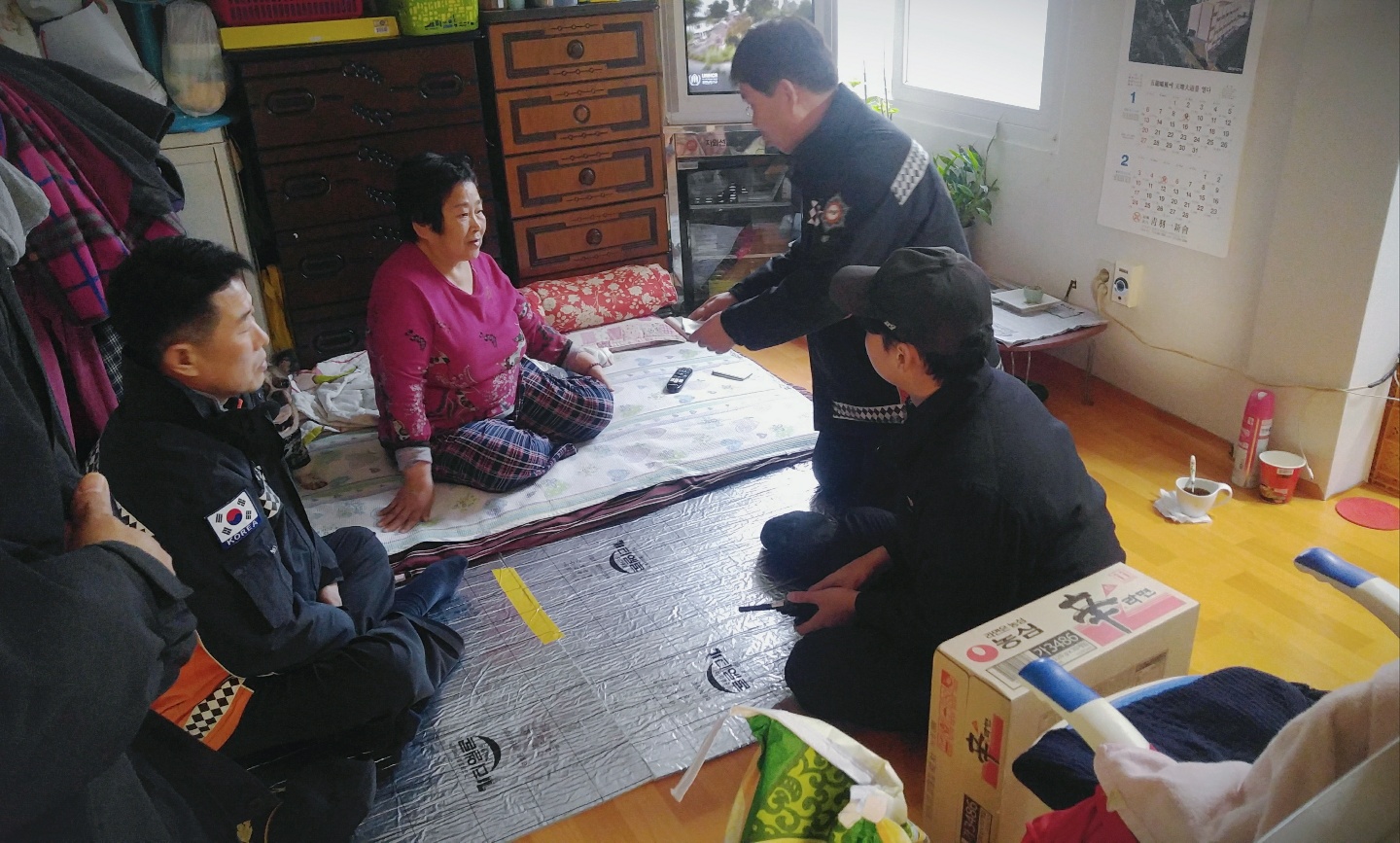 2019년 설을 맞아 관내 홀로 살고 계신 가정을 방문, 화재예방 점검 및 위문품(쌀, 현금 등)을 전달해 드렸습니다.