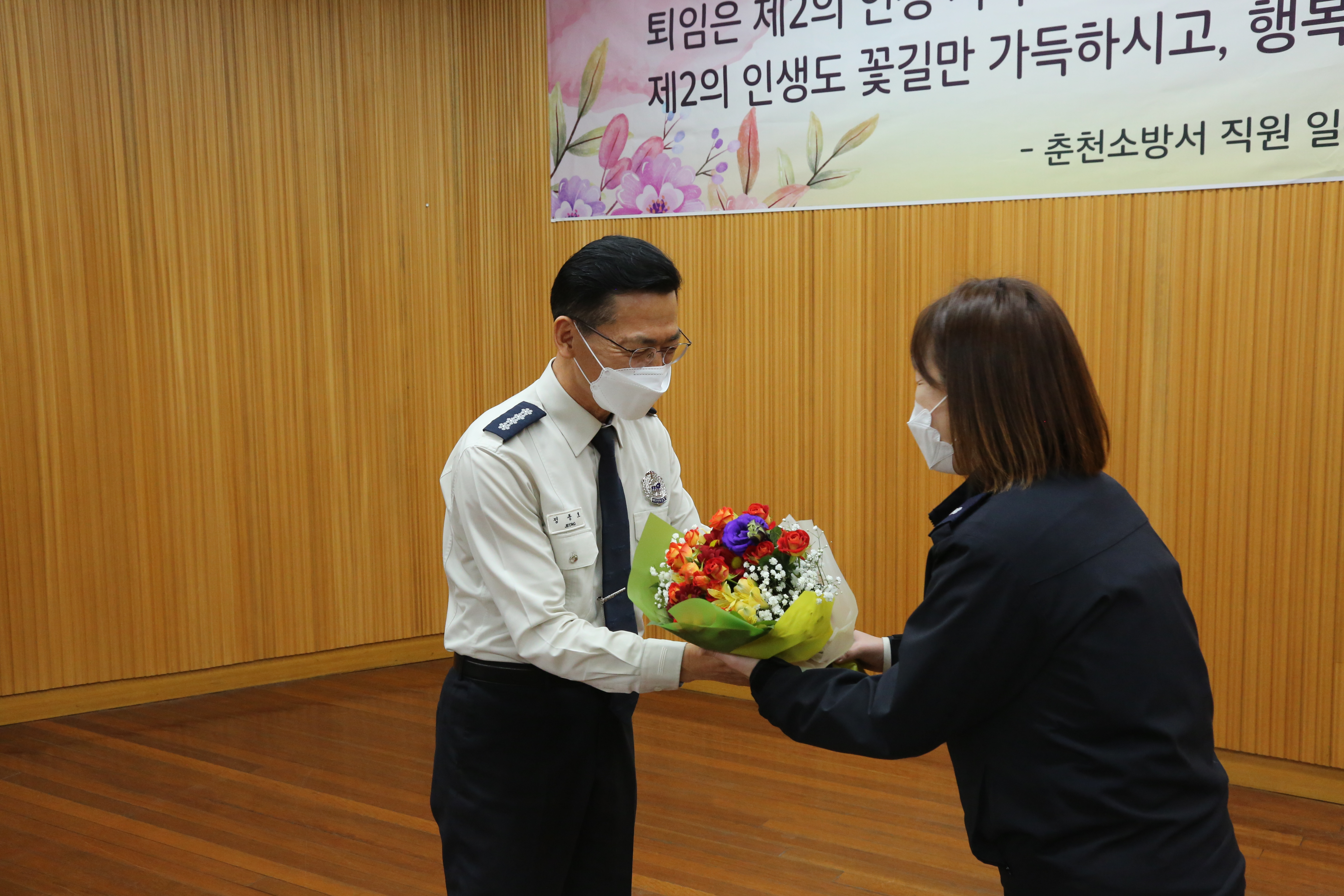 춘천소방서(서장 정종호)는 12.23(목) 11:00 춘천소방서 대회의실에서 제40대 정종호 춘천소방서장의 공로연수 기념식을 개최했다.