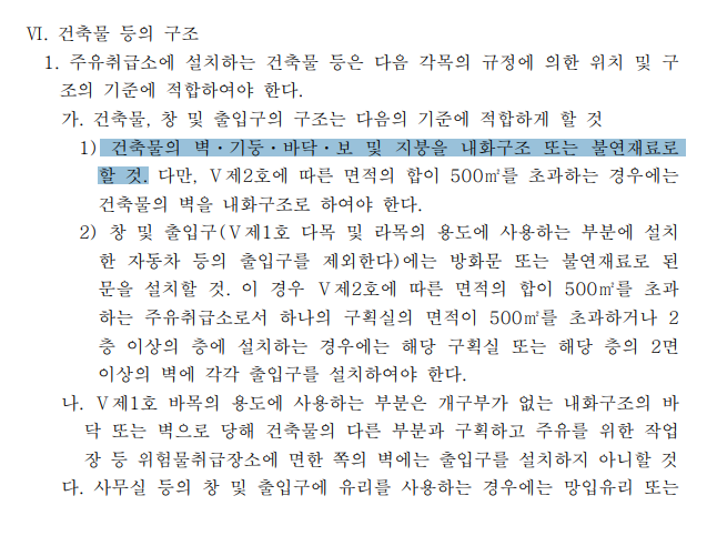 위험물관리법 시행규칙 별표 13에 따라 캐노피 규정 상 자재 문의드립니다. 저는 군 공사감독관으로 현재 자가주유취급소 고정급유설비가 설치되는 주유대 캐노피에 난연2등급 샌드위치판넬이 반영되어 있습니다. 규정상 "캐노피 외부의 배관이 일광열의 영향을 받을 우려가 있는 경우에는 단열재로 피복할 것" 이라 명시되어 있습니다. 저희 공사는 지하의 유류탱크로부터 지반을 통해 급유시설로 이어지고 외부의 배관은 급유장치로 볼 수 있을 것 같습니다.
