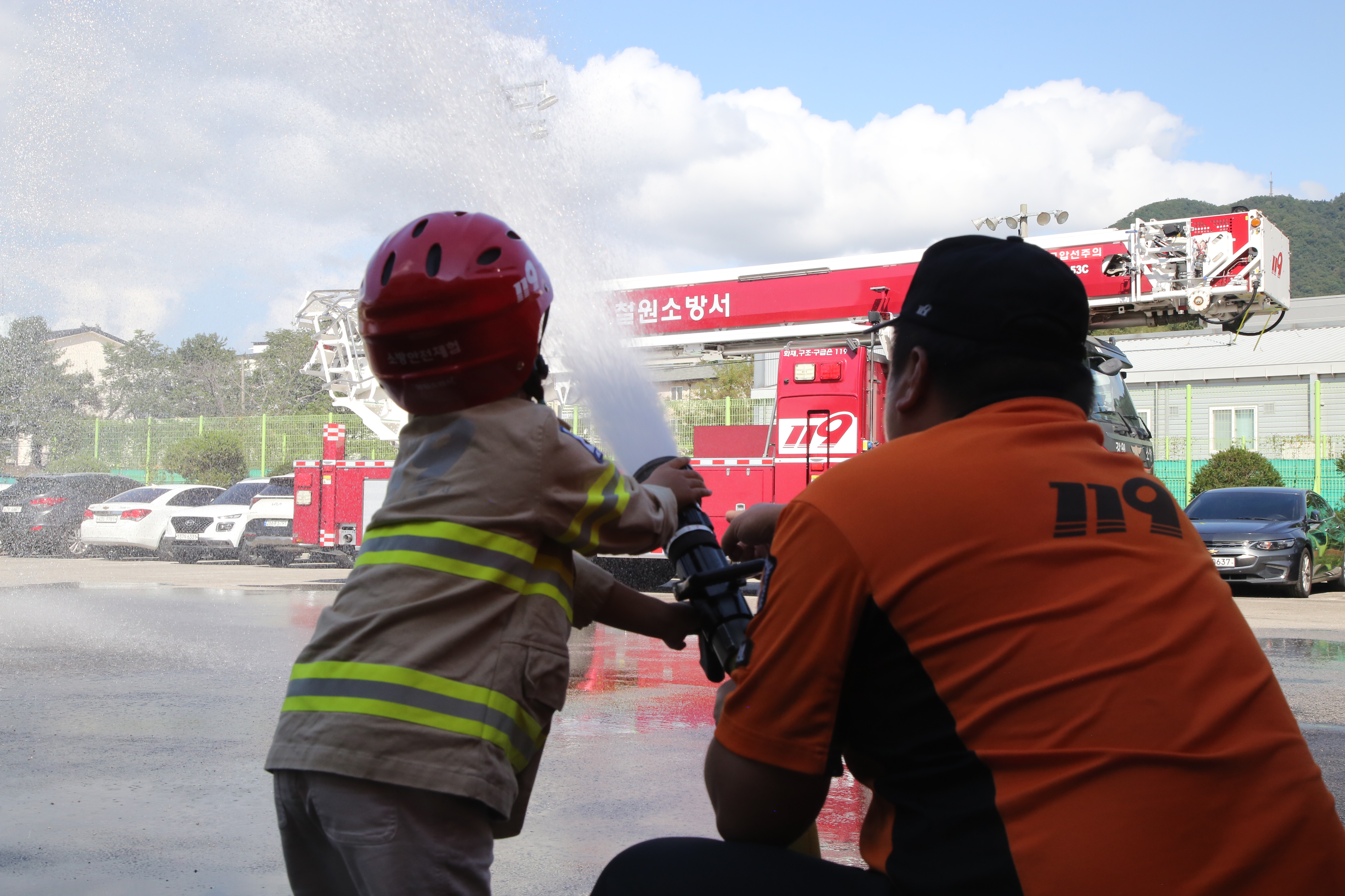 ○ 또한 어린이들은 실제 방화복과 비슷한 어린이 방화복을 착용하고 화재 진압에 필요한 관창을 사용해보며 평소 접하기 어려운 소방관의 역할을 직접 체험할 수 있었다.