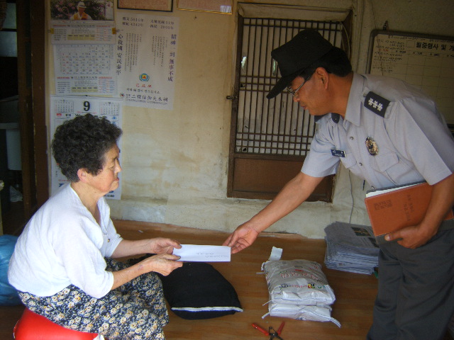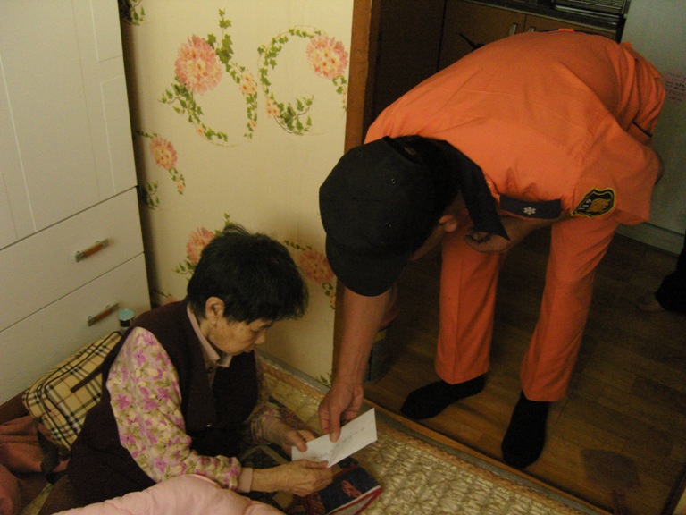 철원소방서(서장 김진봉) 봉사단체 비둘기회에서는 29일 추석을 앞두고 동송읍 오덕리 이모씨(여, 75세)에게 현금 일십만원(100,000원)과 철원 오대쌀 10kg 2포(50,000원)을 전하는 등 총 일백만원(1,000,000원)의 성금을 소외된 주변의 독거노인, 생활보호대상자 등 4가구에 전달하는 사랑을 나누었다.