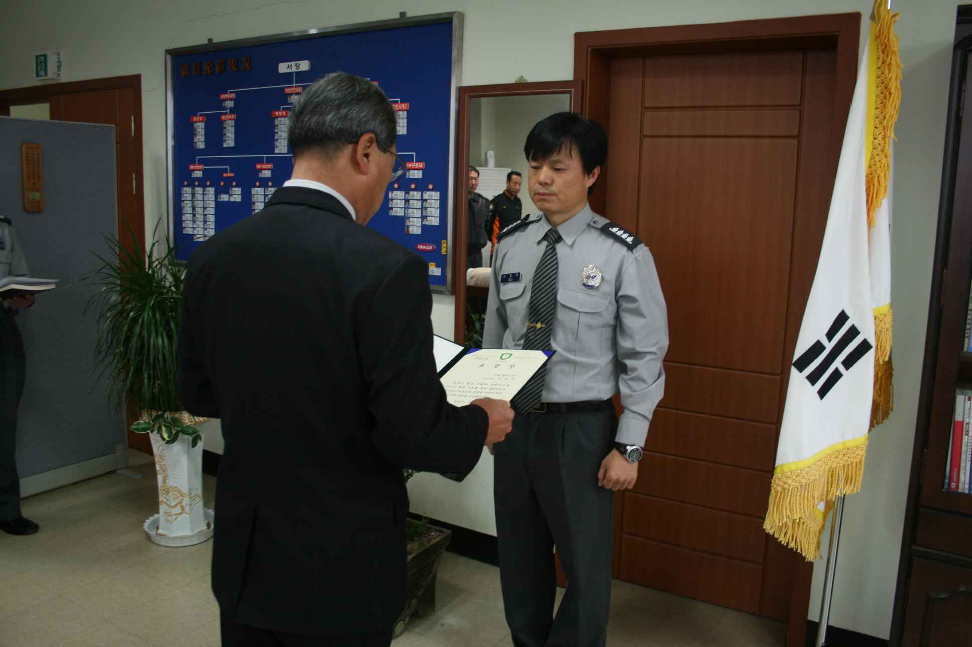 철원소방서(서장 김진봉)은 10일 오전 9시 30분 서장 집무실에서 2009년도 여름철 119시민수상구조대 운영 공로자로 선정된 119구조대 서경우 지방소방장에게 소방방재청장 표창을 수여하고 그간의 노고를 격려했다.