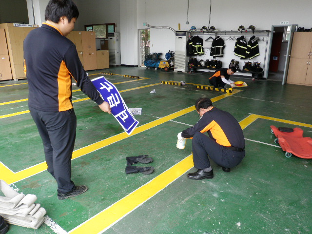 2012년 5월 4일 소방차량 주차시 안전을 위해 주차장 차선 도색 작업을 하였습니다.