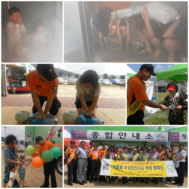 이날 여름철 119안전교실은 119소년단과 다문화가정, 지역주민, 축제장 탐방객 등 대상으로 물놀이 안전사고 예방교육과 이동안전체험차량을 이용한 연기대피체험, 지진체험 역화체험 및 심폐소생술체험 등 다채롭게 진행됐으며, 물놀이 안전사고 예방에 따른 캠페인도 병행 실시됐습니다.