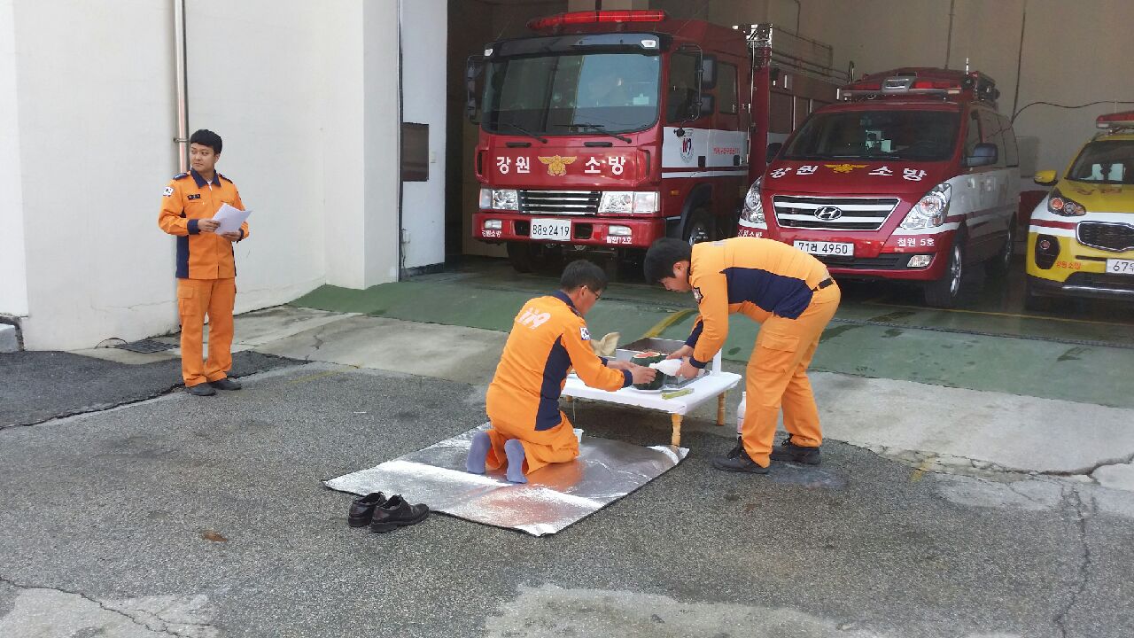 ▲ 금년도 신규 배치 된 철원12호 펌프차량 및 철원 5호 조사차량, 철원 36호 순찰차량의 무사고를 기원하는 기원제가 4월 7일 동송119안전센터에서 진행 되었습니다.