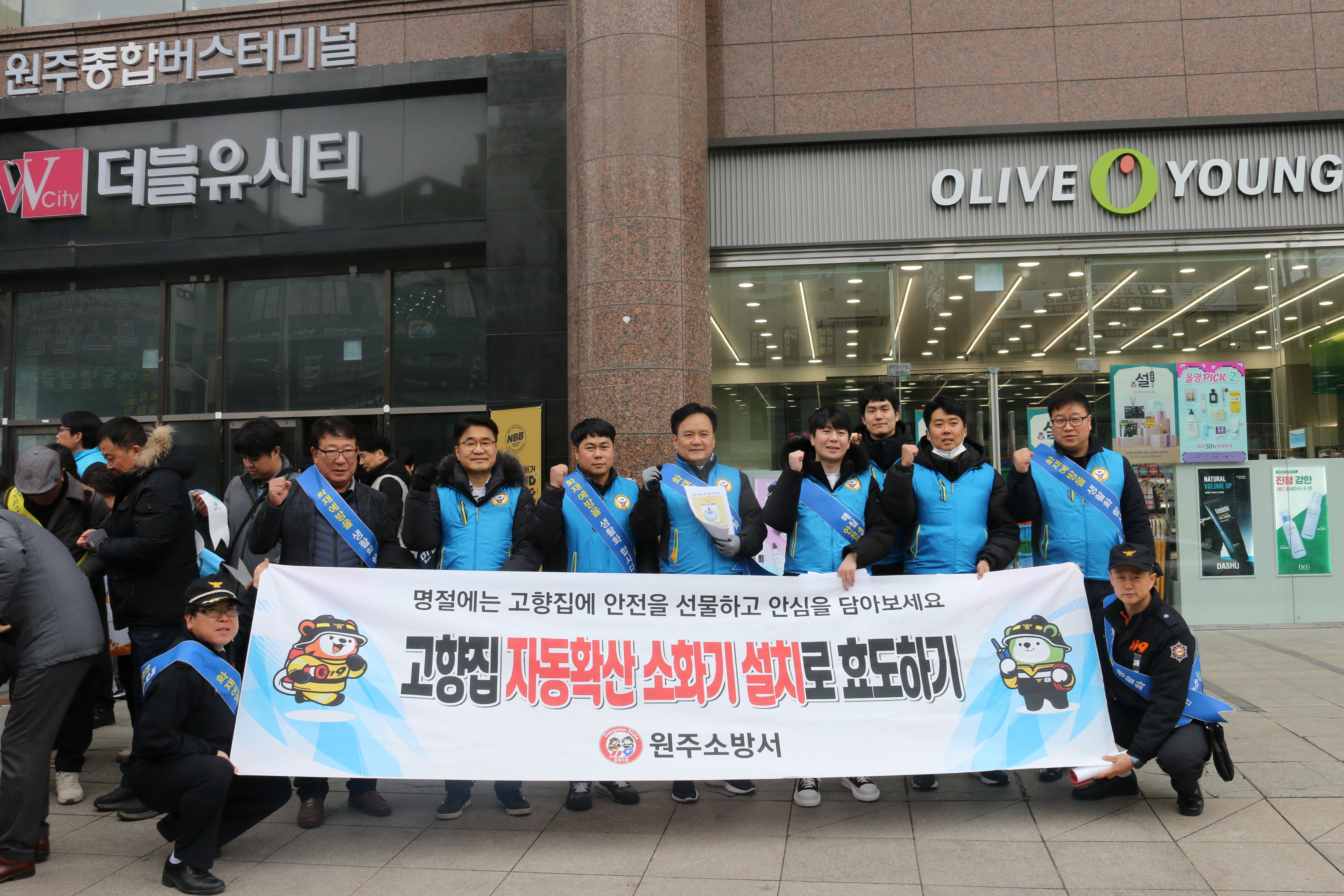 설 명절 대비 다중이용시설을 방문해 고향집 자동확산 소화기 선물하기 등 화재예방캠페인을 진행했다.