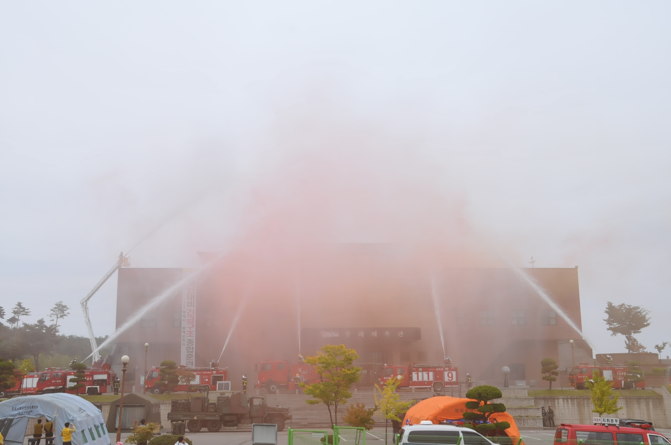 이날 훈련은 동해체육관에 테러범이 침입하여 인질극을 벌이며 시설물을 파괴하여 대규모 인명피해가 발생하는 상황을 가상하여 총 29개 기관 및 단체에서 소방차량 등 장비 90대와 인원 382명이 동원되어 상황부여 단계부터 수습, 복구단계까지 5단계로 진행 되었으며,