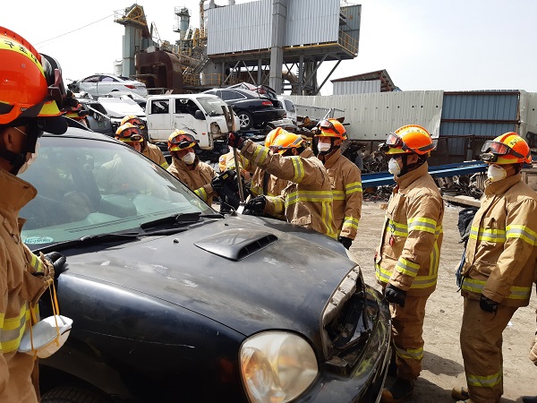 주요 훈련내용으로는 ▲ 자동차 유리파괴 ▲ 차량안정화 및 구출 공간 확보 ▲ 자동차 문 강제개방 및 지붕제거 ▲ 요구조자 구출 및 이동 등이다.