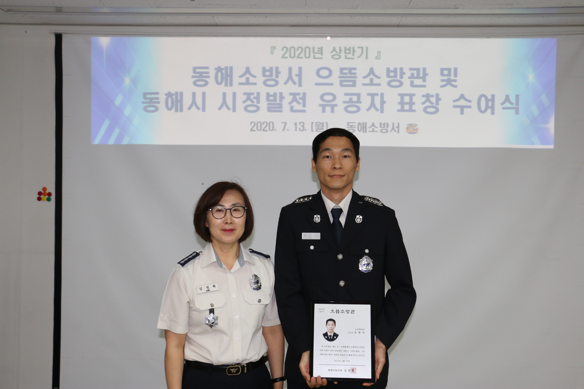 동해소방서, 상반기 으뜸소방관 시상 및 시정발전유공자 표창장 전수식