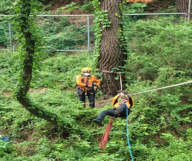 이번 훈련은 여름철 풍수해 대비하여 계곡이나 하천 등 고립현장에서의 대응능력 향상을 위해 구조대장(구조대원 15명)이 훈련에 임하였다.