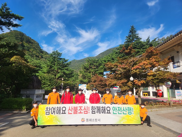 동해소방서(서장 김춘식)는 29일(목), 30일(금) 2일간 가을철 단풍을 찾는 등산객이 증가할 것으로 예상됨에 따라 두타산 및 무릉계곡일대에서 119구조대원 19명이 산악사고를 대비한 특별구조훈련 및 캠페인을 실시했다고 밝혔다.