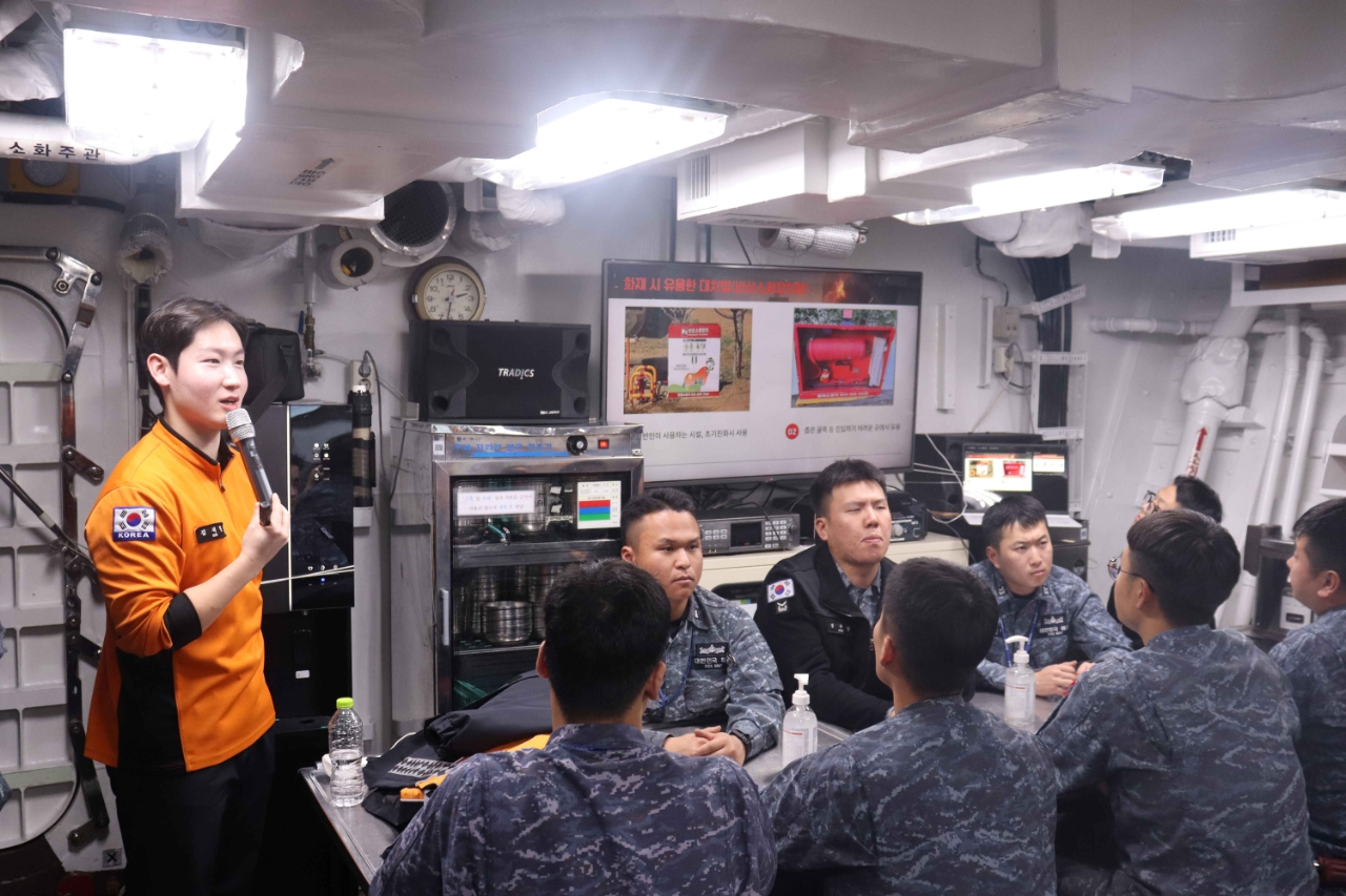 동해소방서(서장 강윤혁)는 지난 10일 오후 해군 제1함대 이병철함 및 홍대선함 장병 30여 명을 대상으로 화재대응 역량 강화를 위한 소방안전교육을 실시했다.