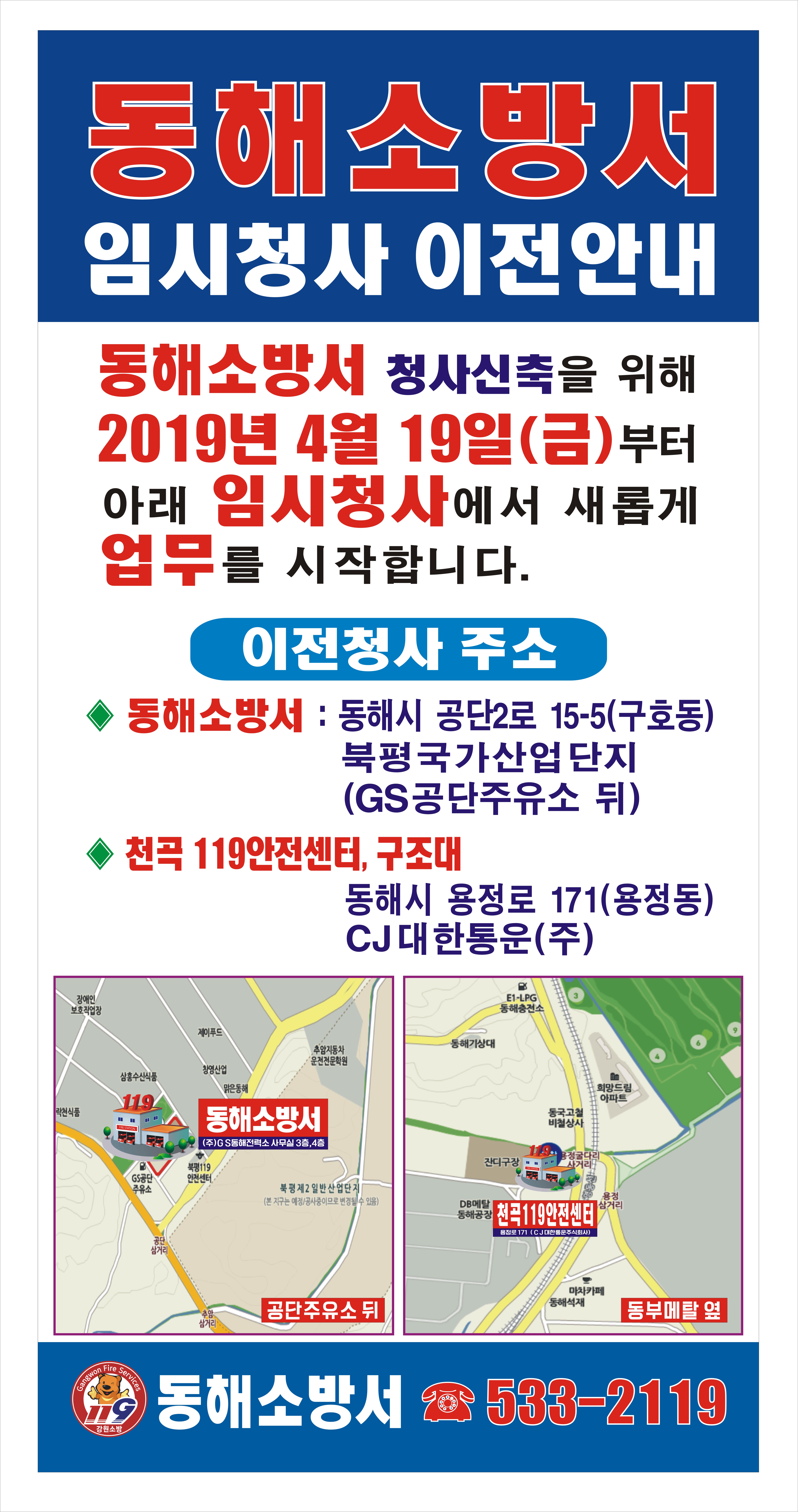 동해소방사 청사신축으로 인한 임시청사 이전공지