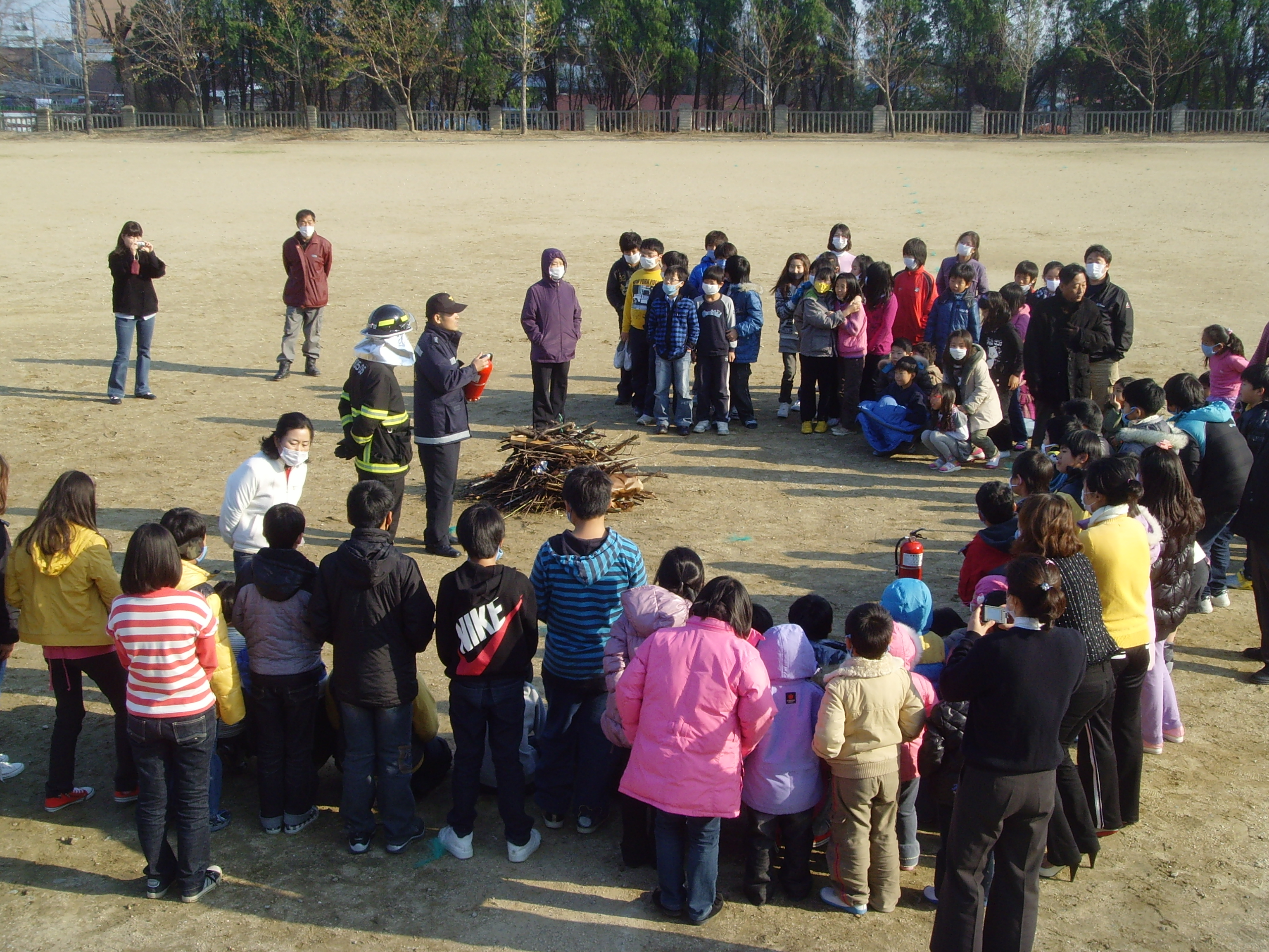 3. 화재진화시범 및 소화기 사용법 등 창호초교에서 합동소방훈련을 실시하였습니다.