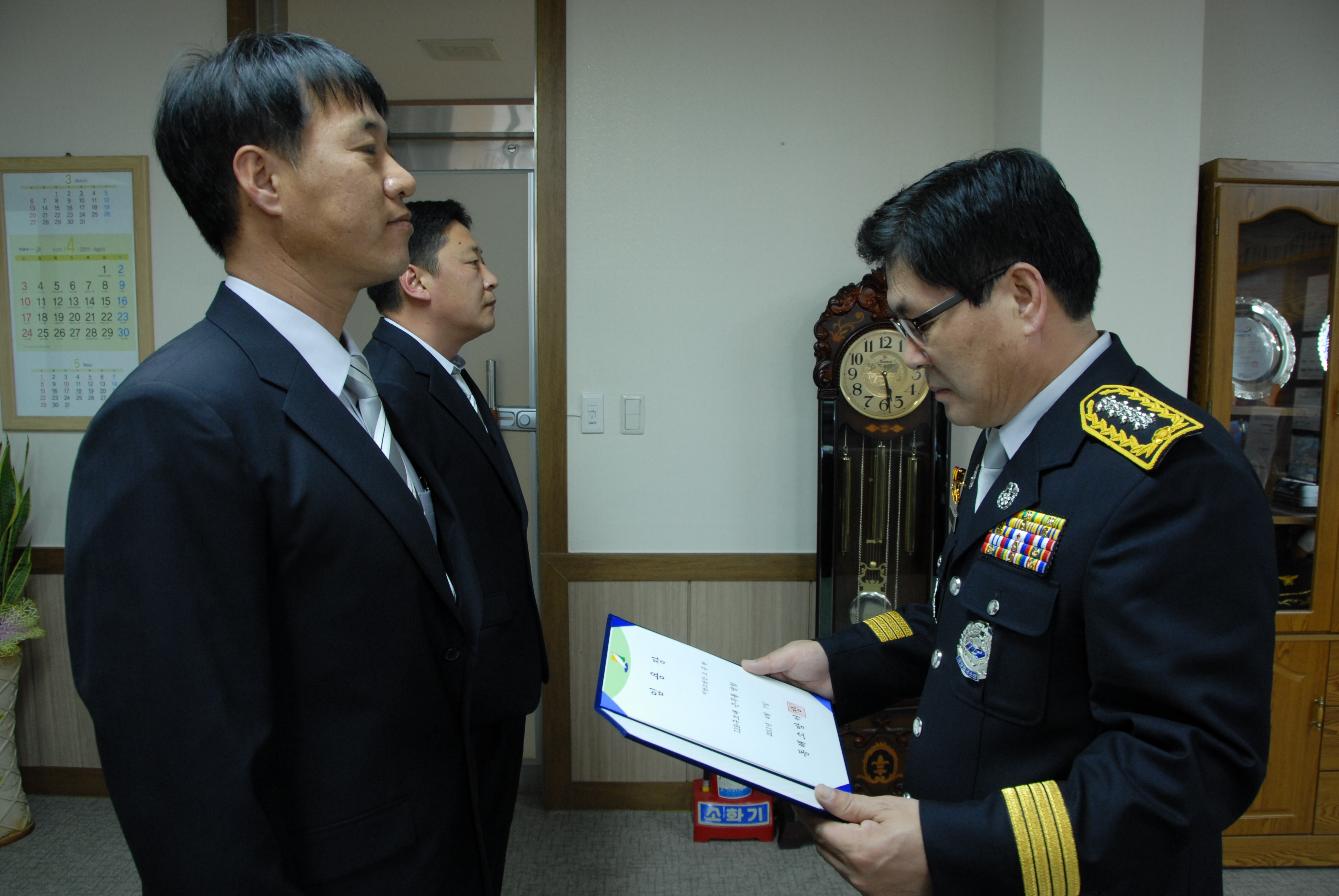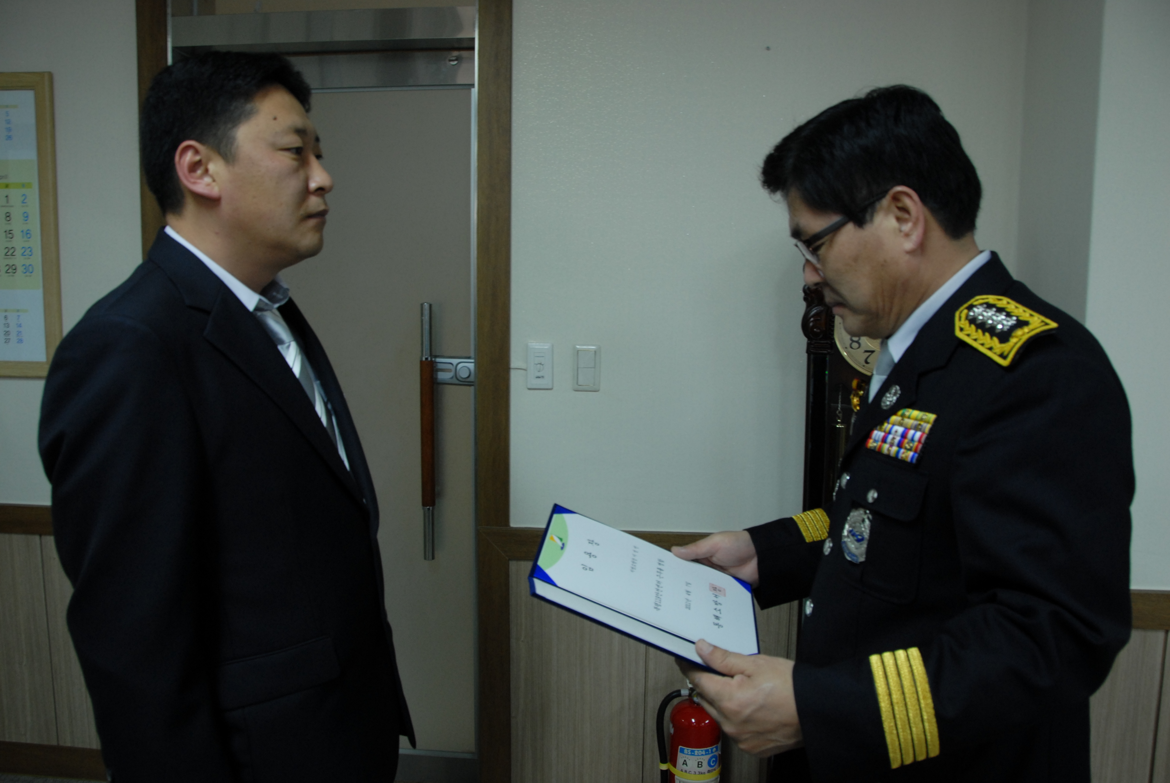 동해소방서 서장 김남숙은 금일 저녁 17시 승진임용장을 전달하였읍니다.
