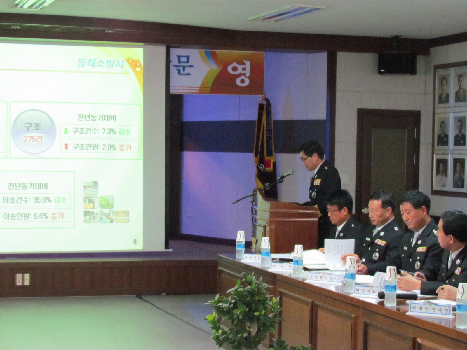 이에 오 본부장은 소방서비스 활성화와 지역 특성에 맞는 업무추진, 시민과 조직을 생각하는 희생봉사하는 소방관, 소방가족들의 신뢰와 화합, 원칙이 바로서는 소방문화정착, 체력과 기술 연마를 통한 부단한 자기관리를 당부했으며, 특히 각종 현장활동 시 안전에 각별히 주의할 것을 강조했다.