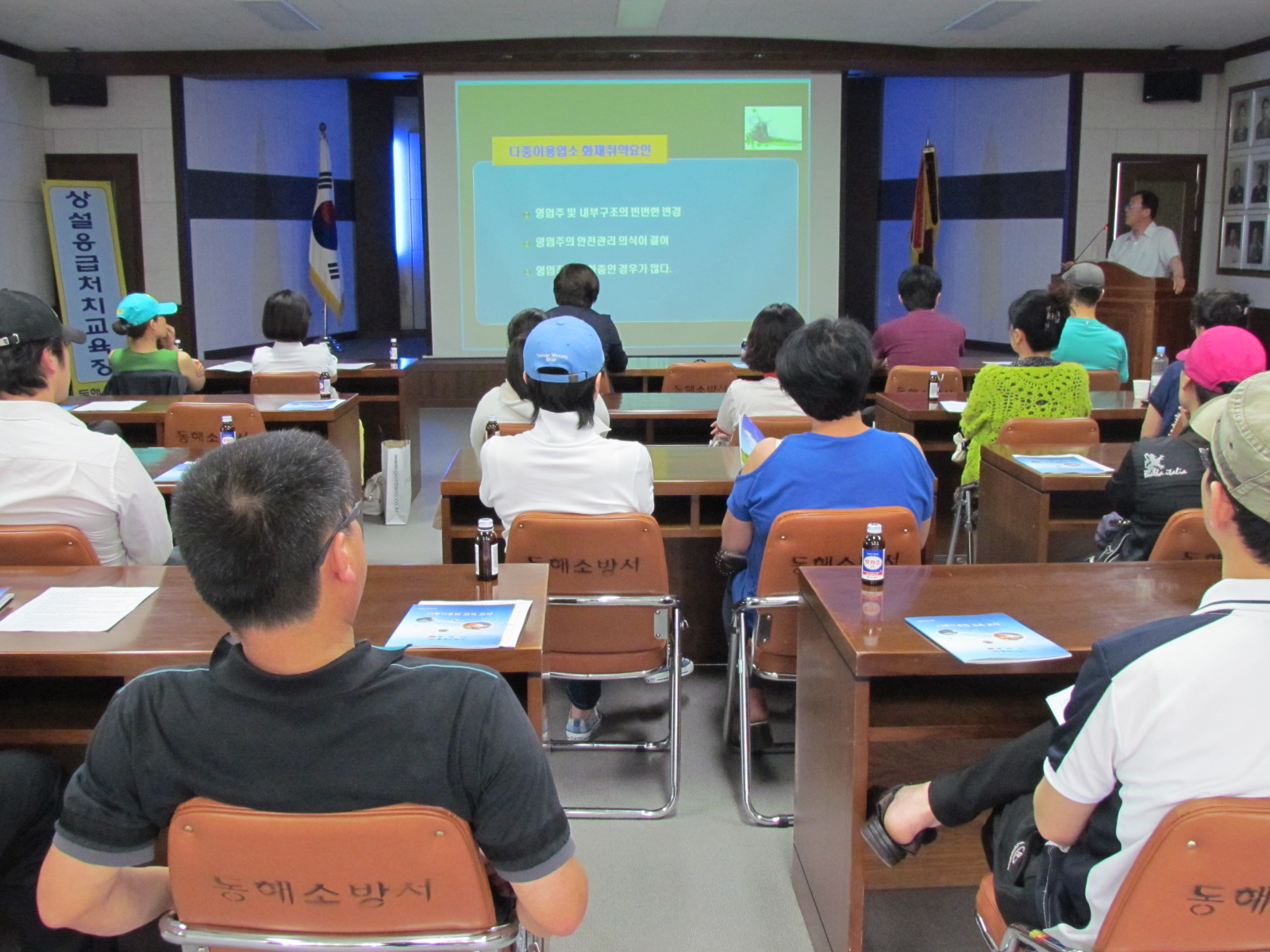 동해소방서(서장 김기성)은 24일 오후 2시 대회의실 및 후정에서 다중이용업주 24명을 대상으로 소방안전교육을 실시했다.