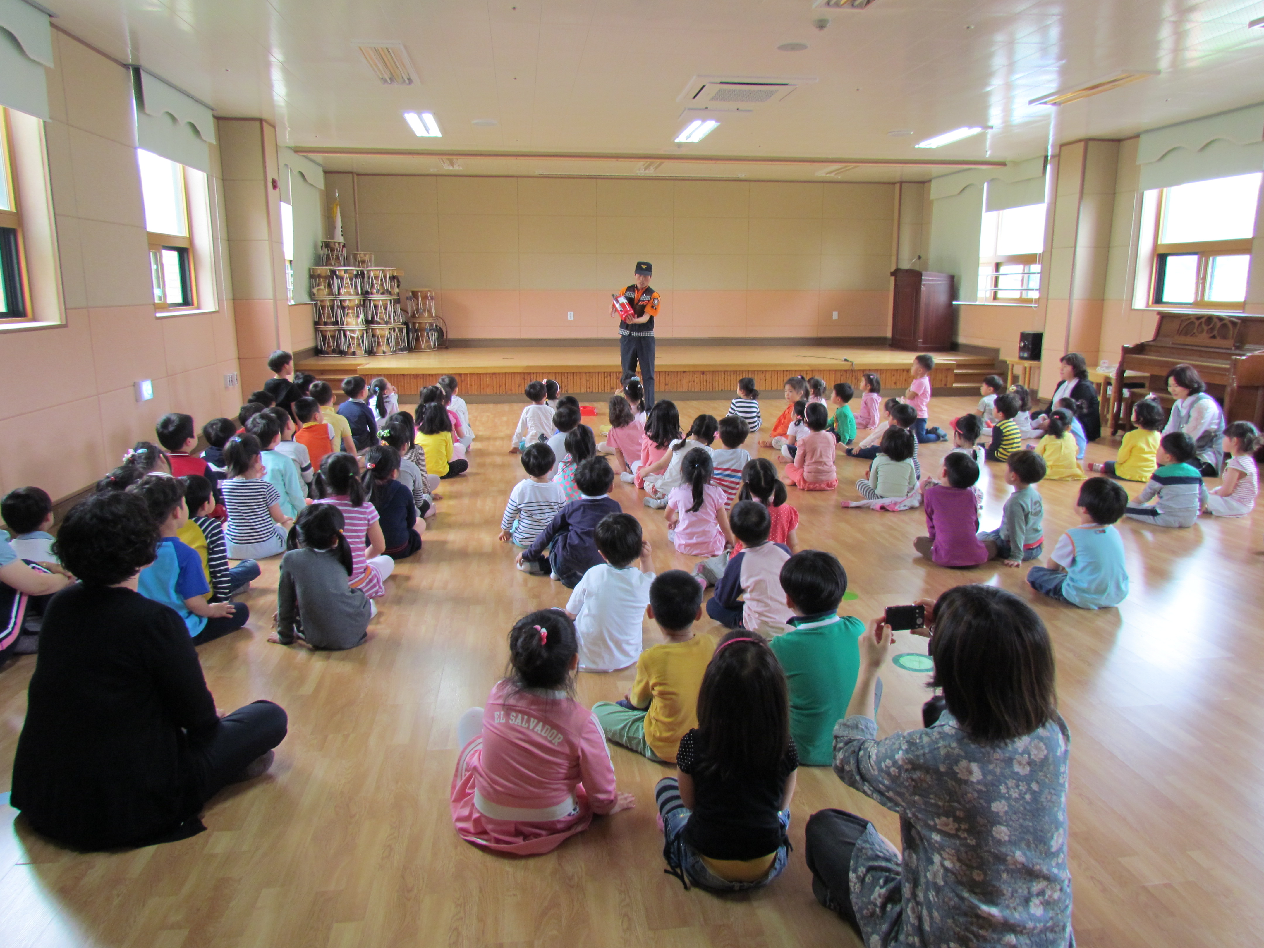 동해소방서(서장 주항중)는 14일 오전 10시 해오름유치원 교직원 및 원아 110명을 대상으로 화재시 대피훈련을 비롯하여 소화기, 소화전, 심폐소생술 체험 교육을 실시하였습니다.