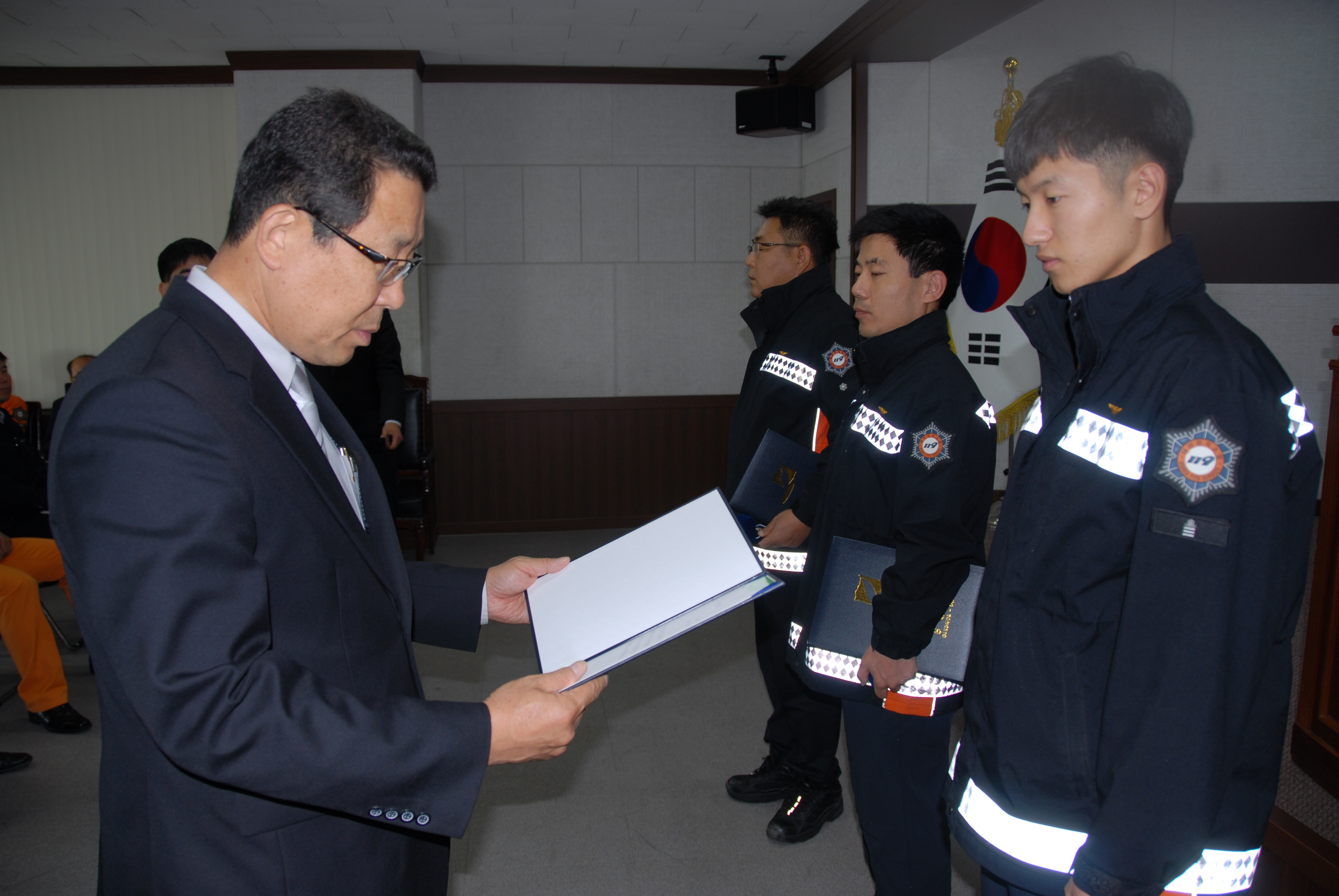 구급대원 정해일, 이석하, 의무소방원 조상문 하트세이버 인증서 수여