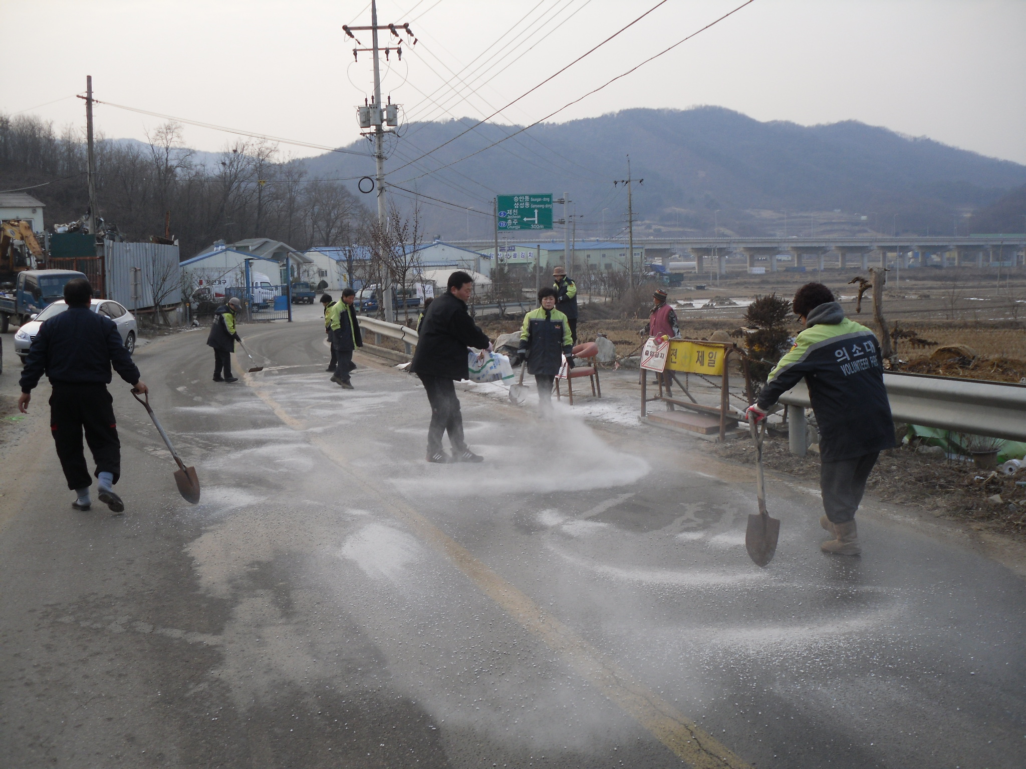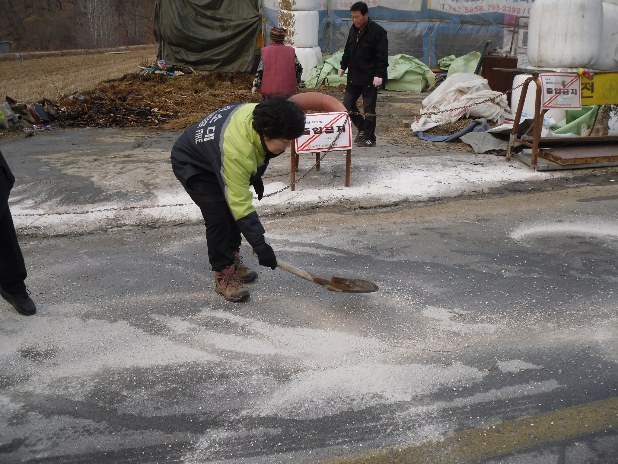 화재진압 후에 도착해서 무얼했냐?고 물으신다면......물이 쏟아진 주변의 도로가 얼음판으로 변해 2차 사고가 발생하지 않도록 도로에 마른 가루를 뿌려놓고 왔답니다.
