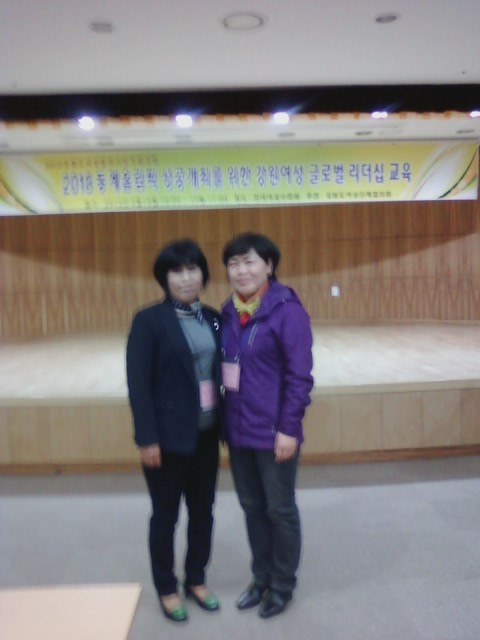 오오석 도연합회장(흥업여성의용소방대대장)은 장순자부회장(정선읍대장)은 강릉 옥계 한국여성수련원에서 4월18일~19일 1박2일동안 도여협 주최로 열리는 2012년 평창동계올림픽 성공개최를 위한 강원여성글러벌리더쉽교육"에 참석하였습니다.힘들게 유치한 동계올림픽! 친절, 미소, 깨끗한 환경으로 다시찾고싶은 강원도를 여성의 힘으로 만들어 가자라는 다짐도 하였습니다.1박2일동안 힘든 교육이였지만 유익한 시간이였습니다.
