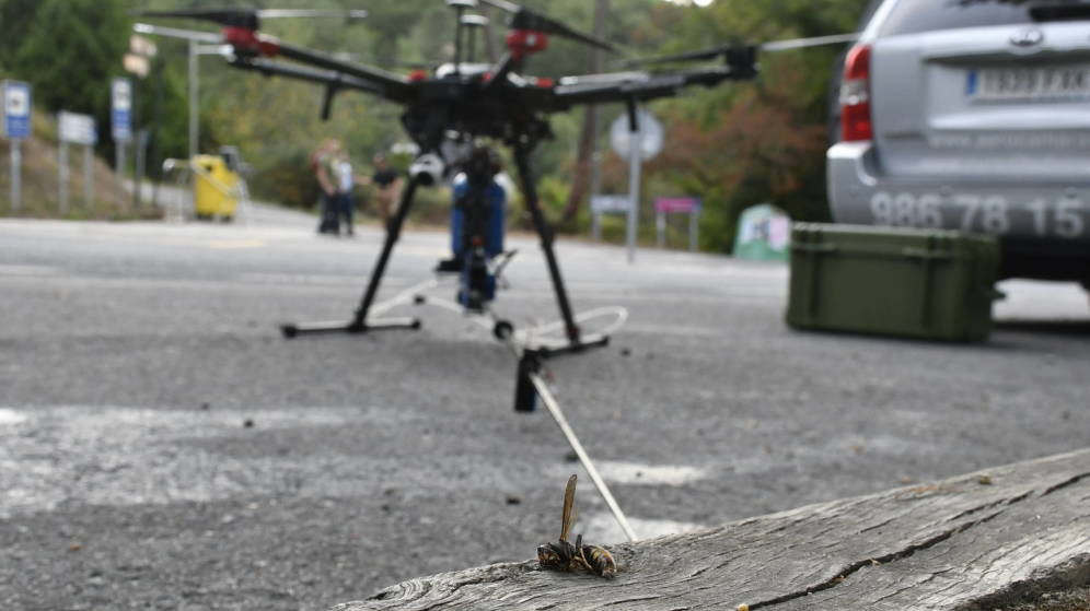 말벌의 비정상적으로 많은 공격 횟수와 그로 인해 많은 사망자수를 기록하고 있는 Vila de Cruces에서 이번 여름에 공포을 유발하는 곤충인 말벌제거를 위해 드론을 사용했습니다.
