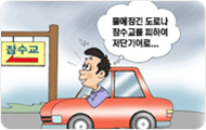 - 물에 잠긴 도로나 잠수교를 피하여 평소 아는 길로 저단기어로 운행토록하고 하천변 주차차량은 신속히 안전한 곳으로 이동합시다.