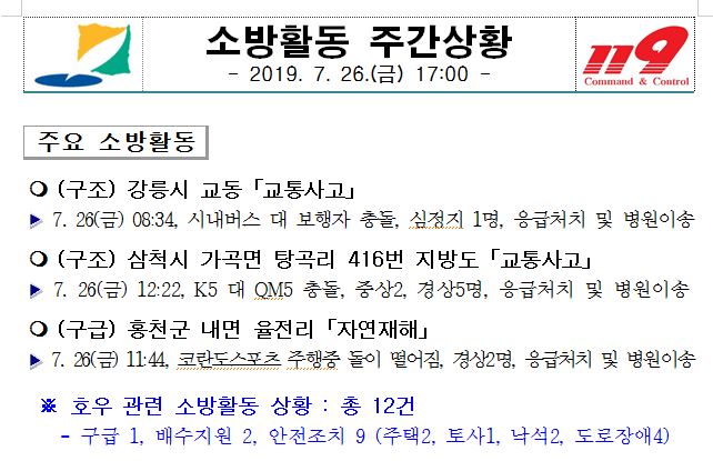 소방활동 주간상황(7. 26. 금) 17:00