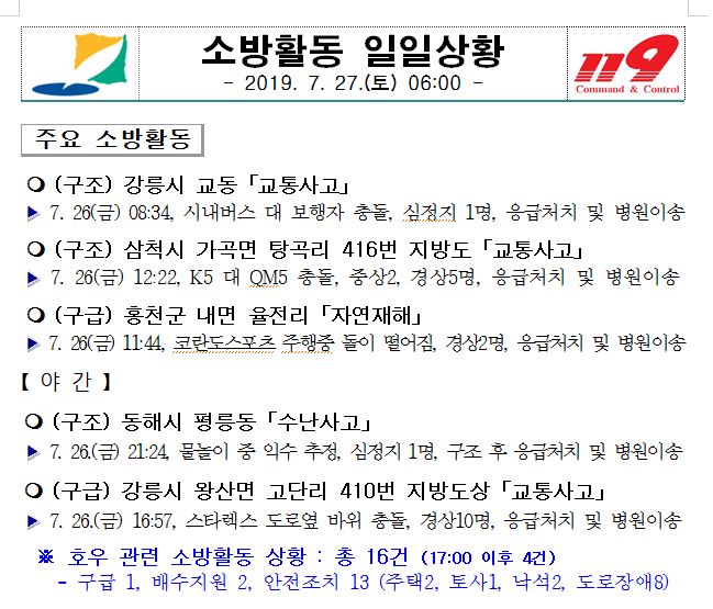 소방활동 일일상황(7. 27. 토) 06:00