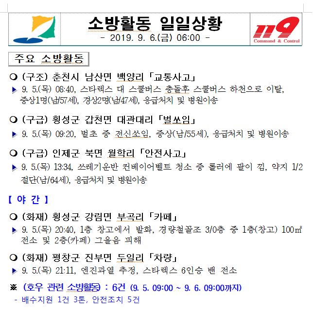 소방활동 일일상황(9. 6. 금) 06:00