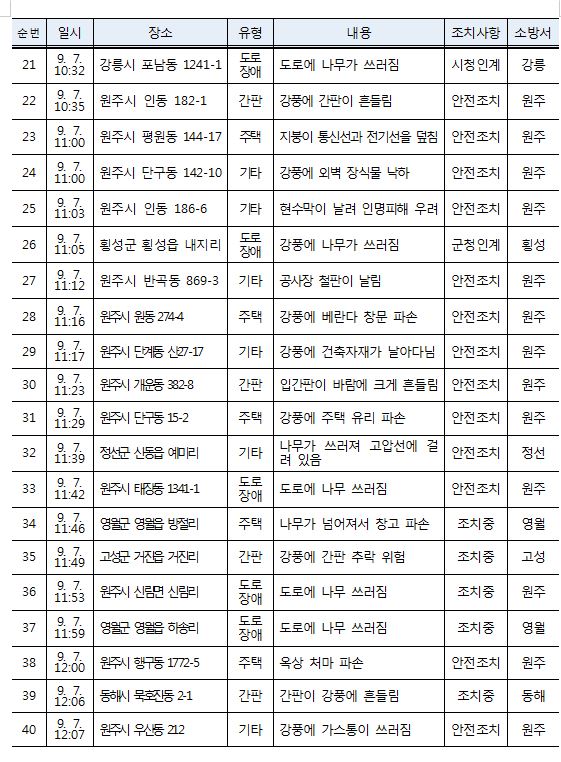 태풍 피해 현황 (13:00 기준)