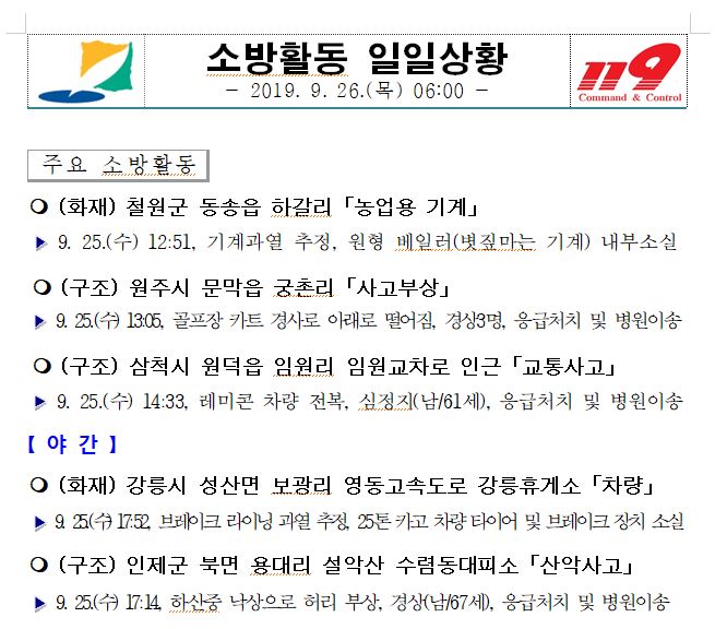 소방활동 일일상황 (9. 26. 목) 06:00