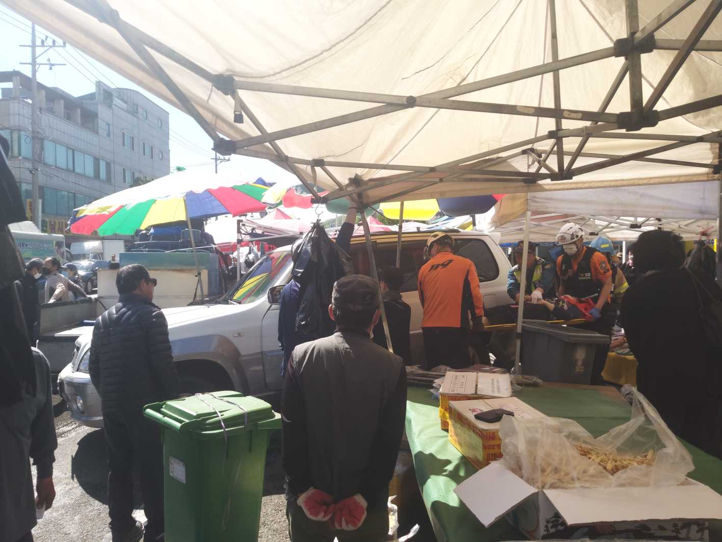 ◆내용: 북평5일장 장터(어물전)에서 테라칸 차량이 좌판으로 돌진.