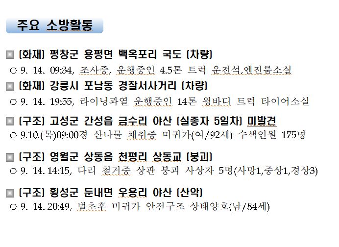소방활동 일일상황(9.15. 화) 06:00