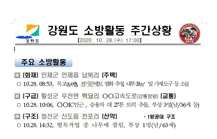 강원도 소방활동 주간상황(10. 28. 월) 17:00