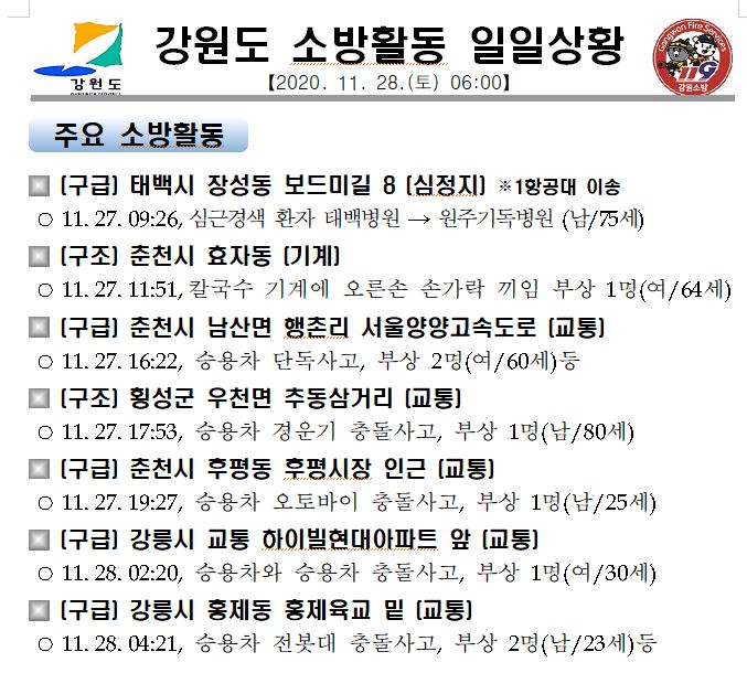 강원도 소방활동 일일상황(11.28.토) 06:00