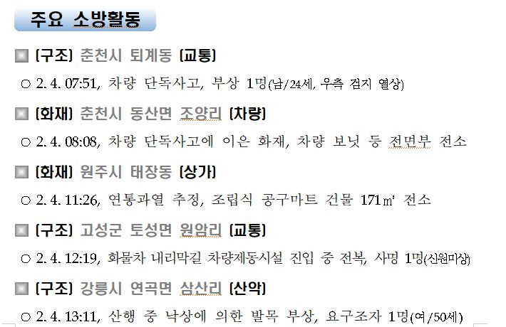 강원도 소방활동 주간상황(2. 4. 목) 17:00