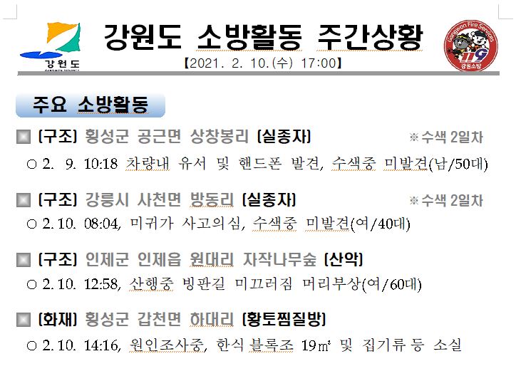 강원도 소방활동 주간상황(2. 10. 수) 17:00