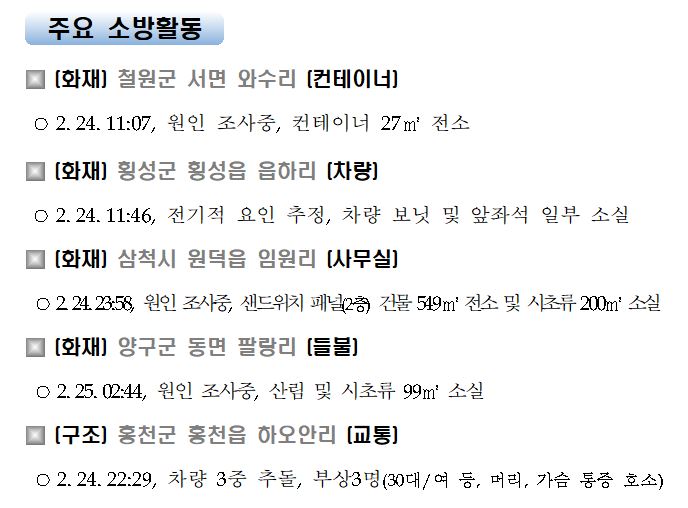 강원도 소방활동 일일상황(2. 25. 목) 06:00